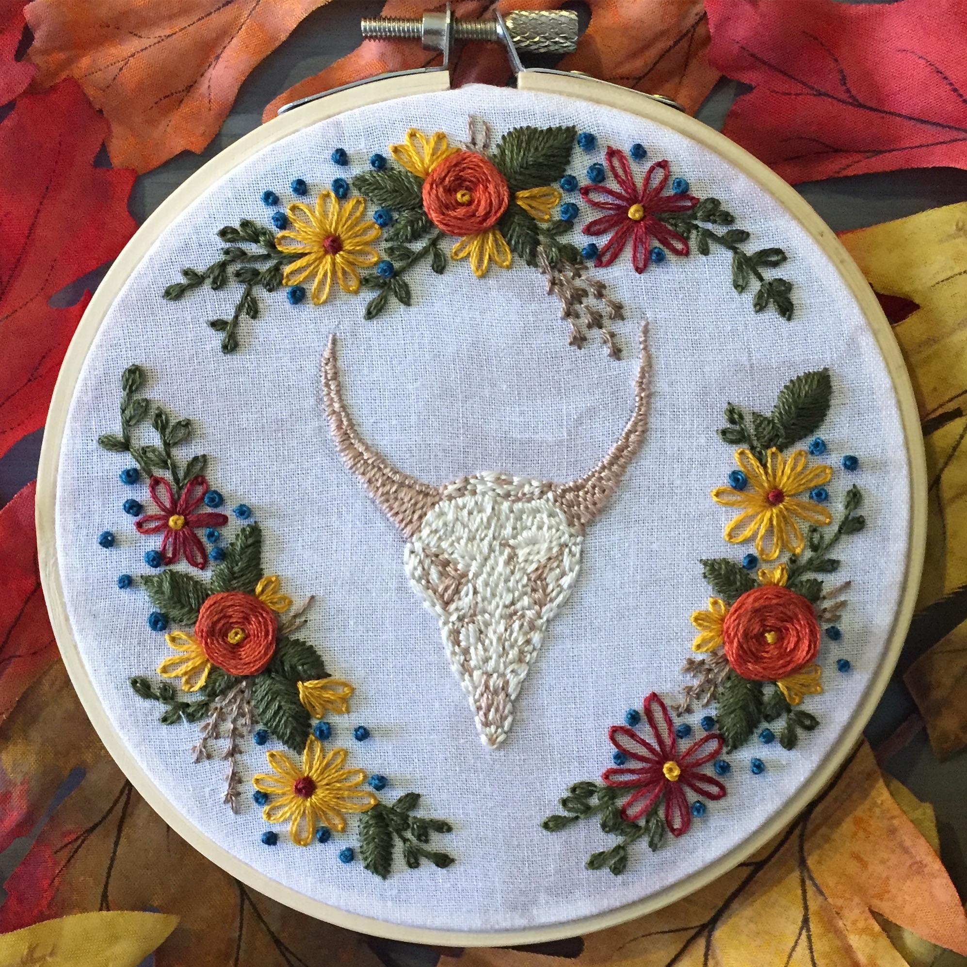 I've always loved creating, be it with a pen and paper, paints, watercolors, knitting needles, or a needle and thread. I find that creating art is calming and at the same time brings me excitement and joy. In the spring of this year I came across an old and unused cross stitching craft kit that I received as a gift when I was a child. Having just given birth to my second son, I felt that I could use a new hobby (one that didn't include much physical excerption) for when my boys were napping. I skipped the cross stitching instruction booklet and set straight to teaching myself embroidery. I have always been intrigued by embroidery. It has been a pass-time for women for centuries. I quickly learned that there are so many talented embroidery artists out there, each with their own style. I enjoy looking at different types of stitches and learning how to use different techniques. I am finding my niche and enjoy sharing my art with you all.